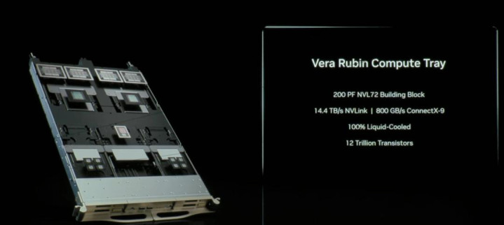 黄仁勋展示的Vera Rubin计算托盘则采用高度集成设计,是一个完全无线并且100%液冷的节点。