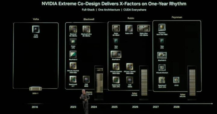 现场老黄又搬出了GPU未来三年计划——到2028年推出Feynman。
