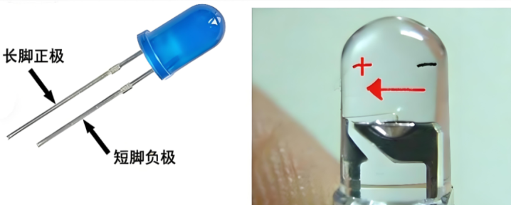 引脚长度:长引脚为正极,短引脚为负极。