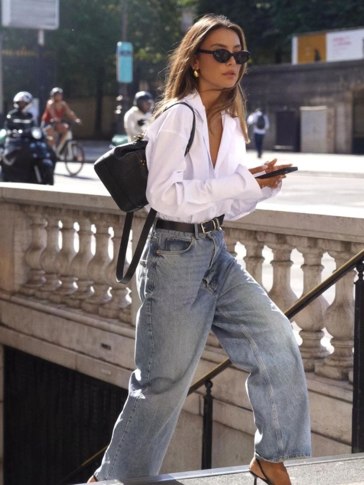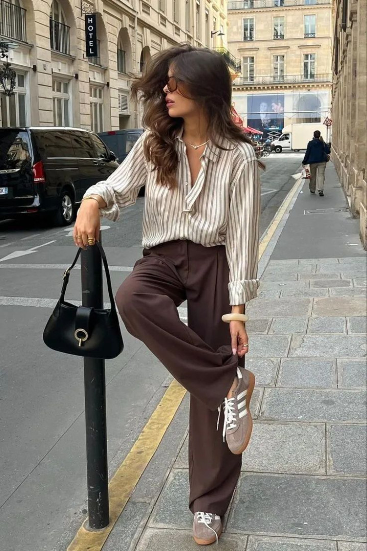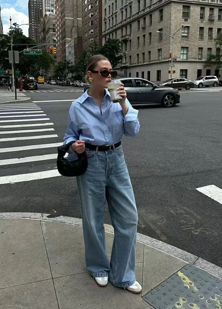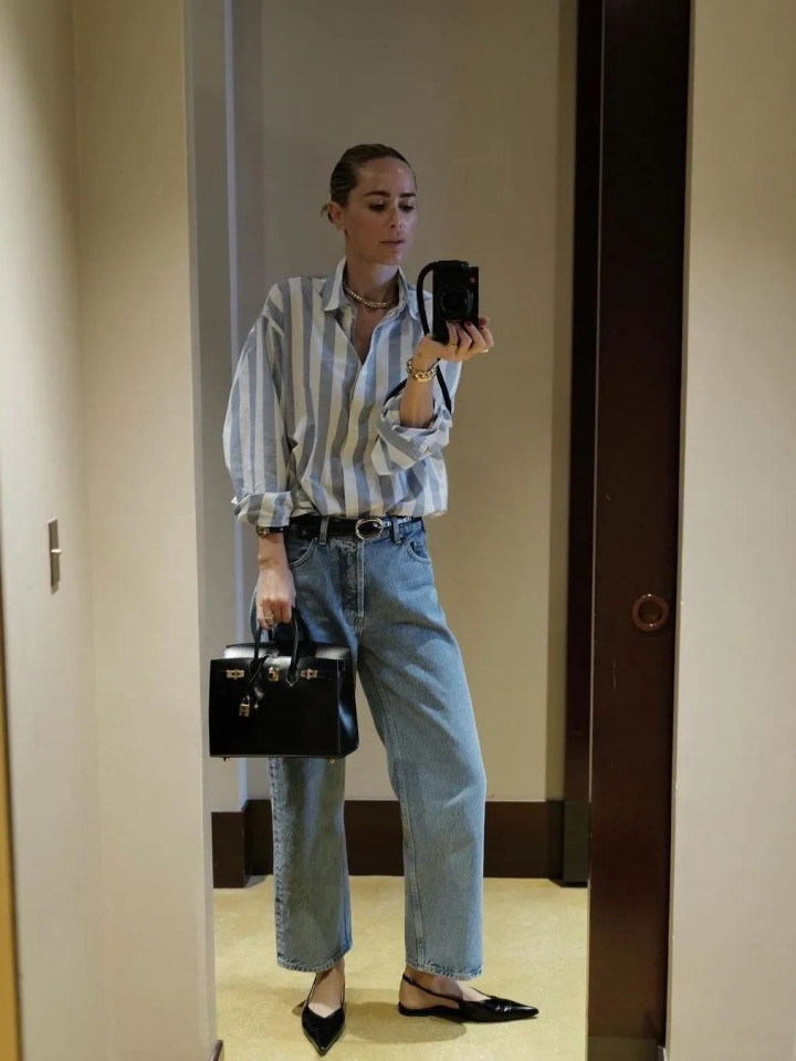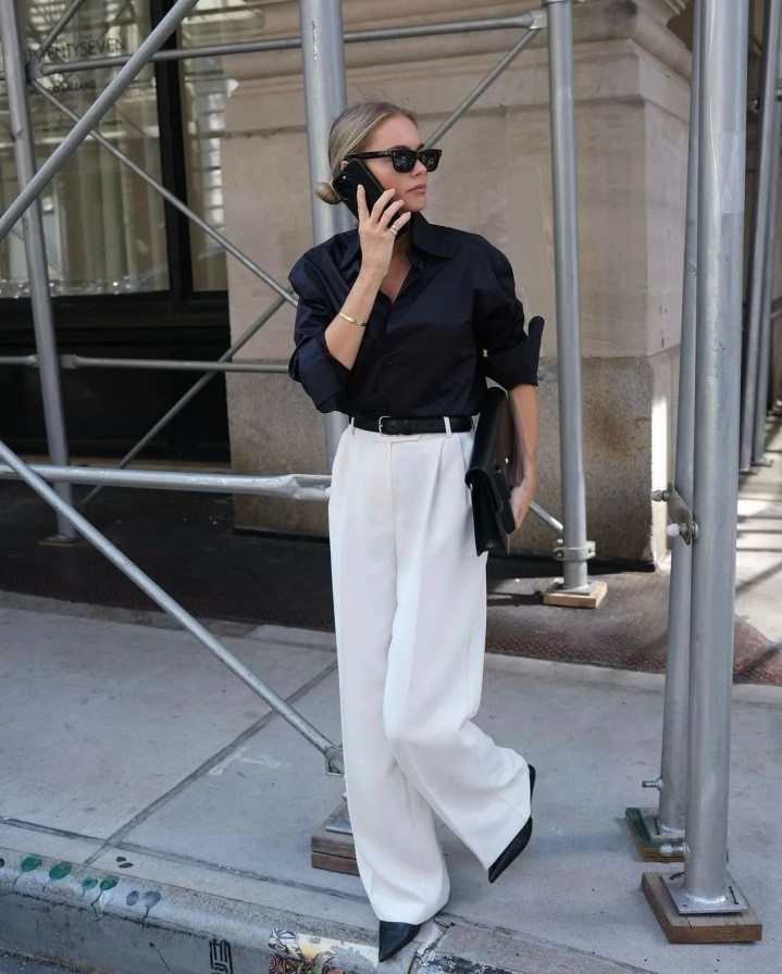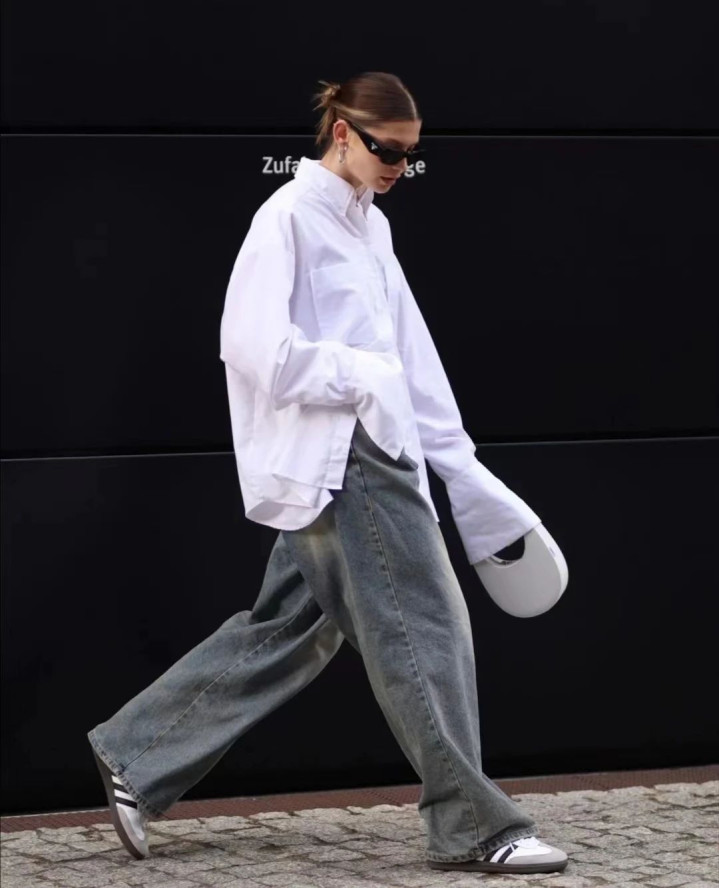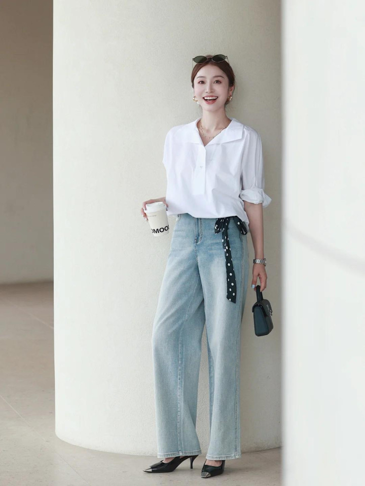 悄悄说个显瘦公式:修身衬衫塞一半衣角 + 直筒阔腿裤,腰臀比瞬间拉满!怕单调就系条细皮带,金属扣头还能当配饰,细节感直接拉满~ 脚踩帆布鞋是元气少女,换双小皮鞋又多了点法式优雅,一套衣服穿出 N 种风格!